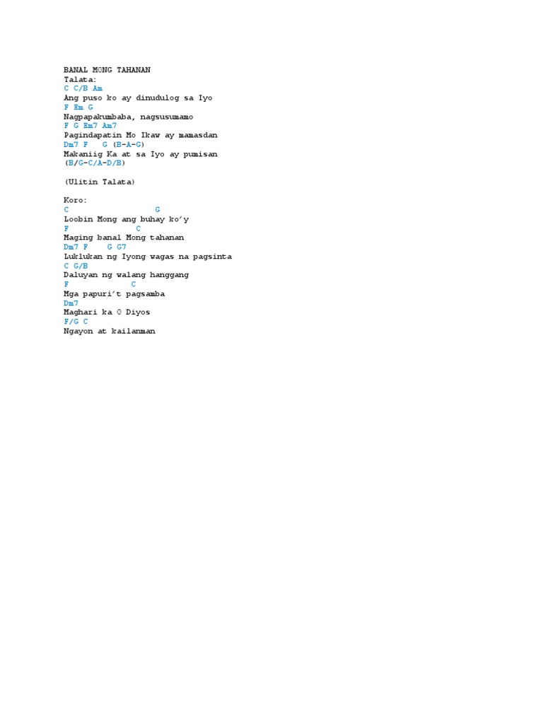 We do our best to provide the exact lyrics and chords of your favorite Ta. Banal mong tahanan by MusikathaA Christian worship songCover by Clairebeth CajefeIntrumental from. Translations of Banal Mong Tahanan.