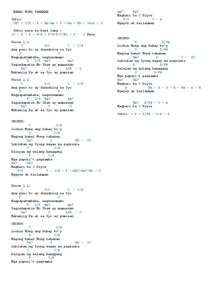 Banal MONG TAHANAN Key of D INTRO. Welcome to harlies musicbanal mong tahanan worship song karaoke without copyrightrelaxing and with nature back groundplease subscribelikecomment and sh. 1103 To to be able to download PDF tabs rate comment.